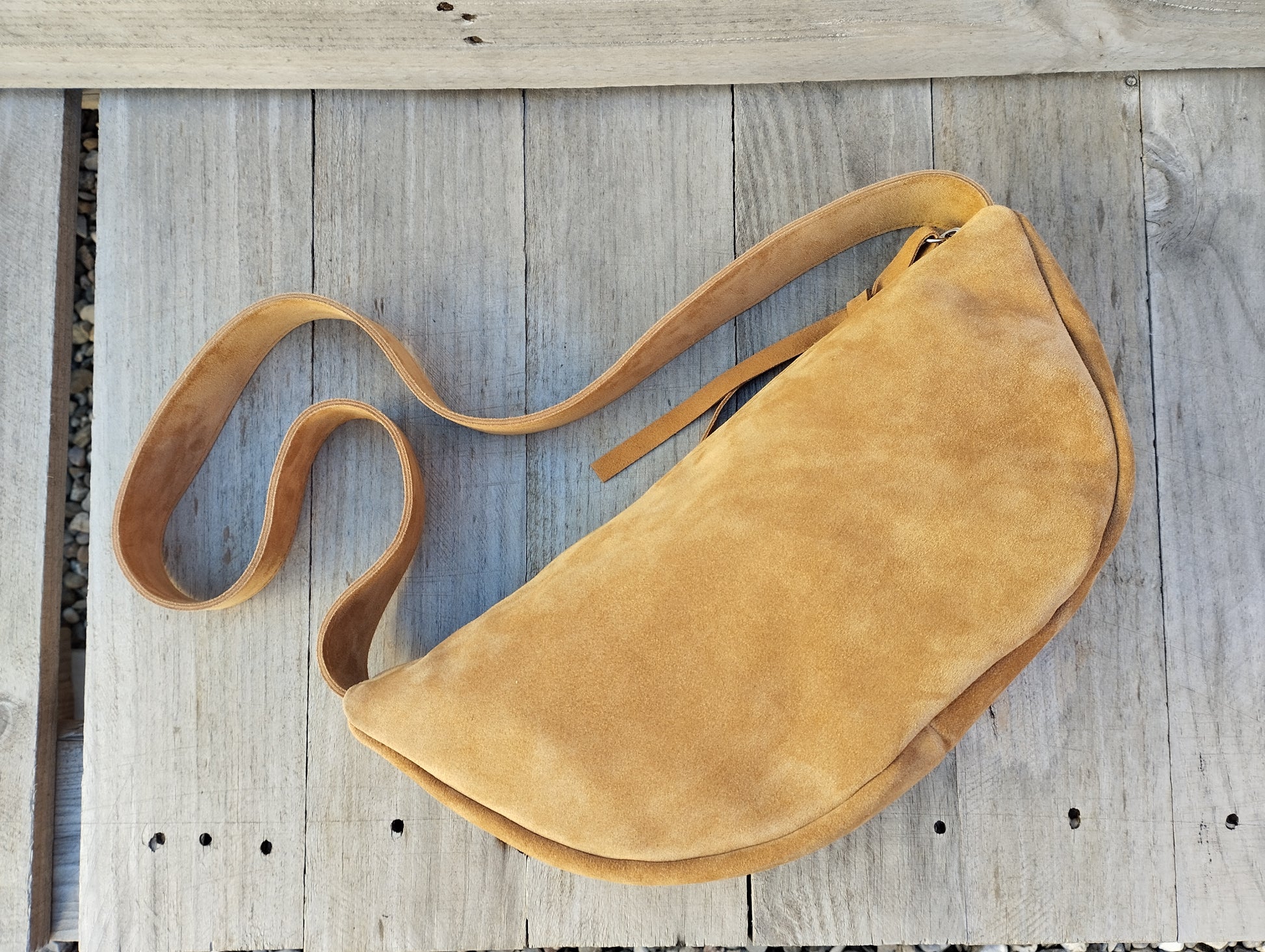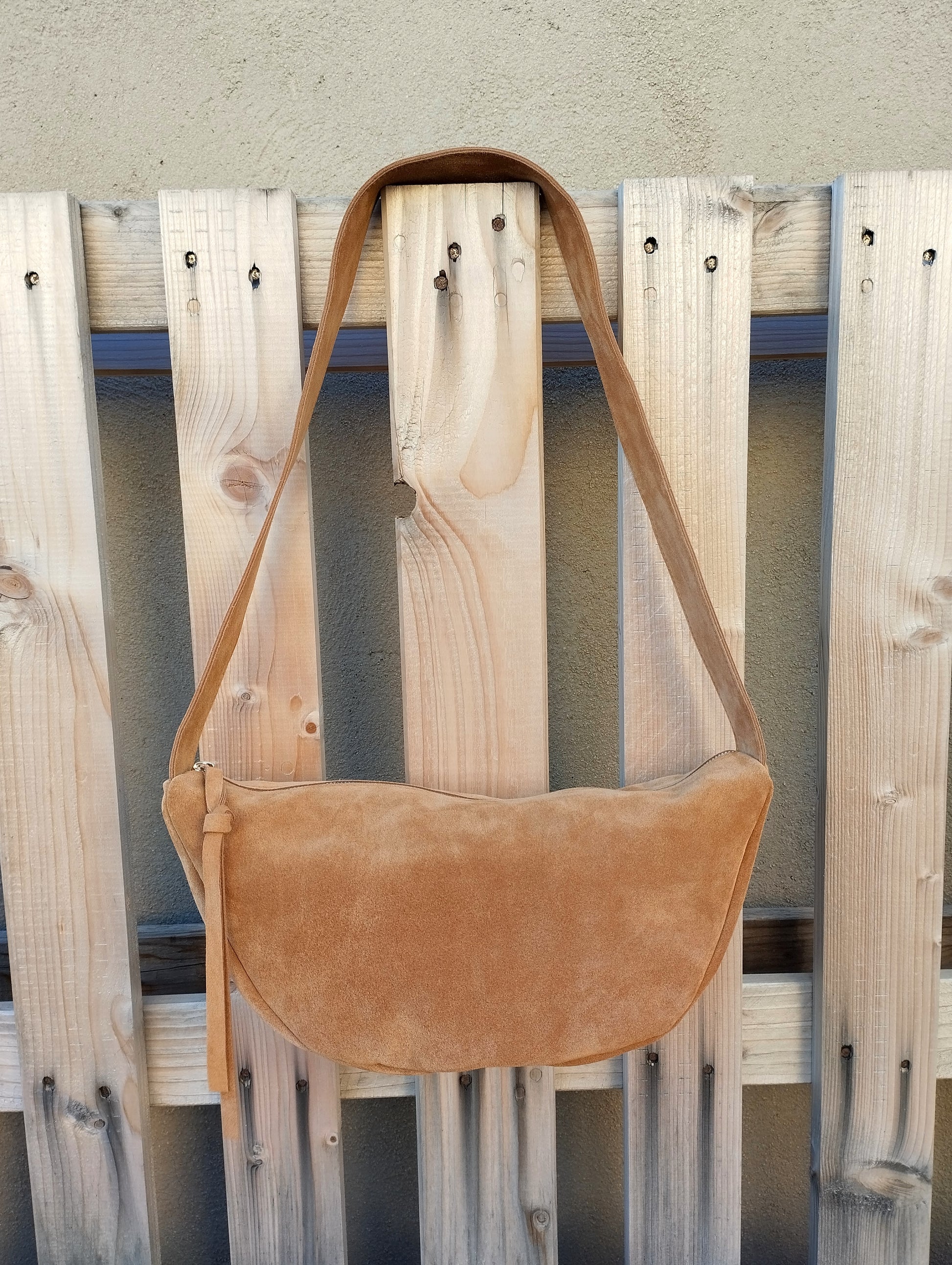 Belém es un bolso versátil, de media luna y con una bandolera que se puede llevar al hombro o cruzado.