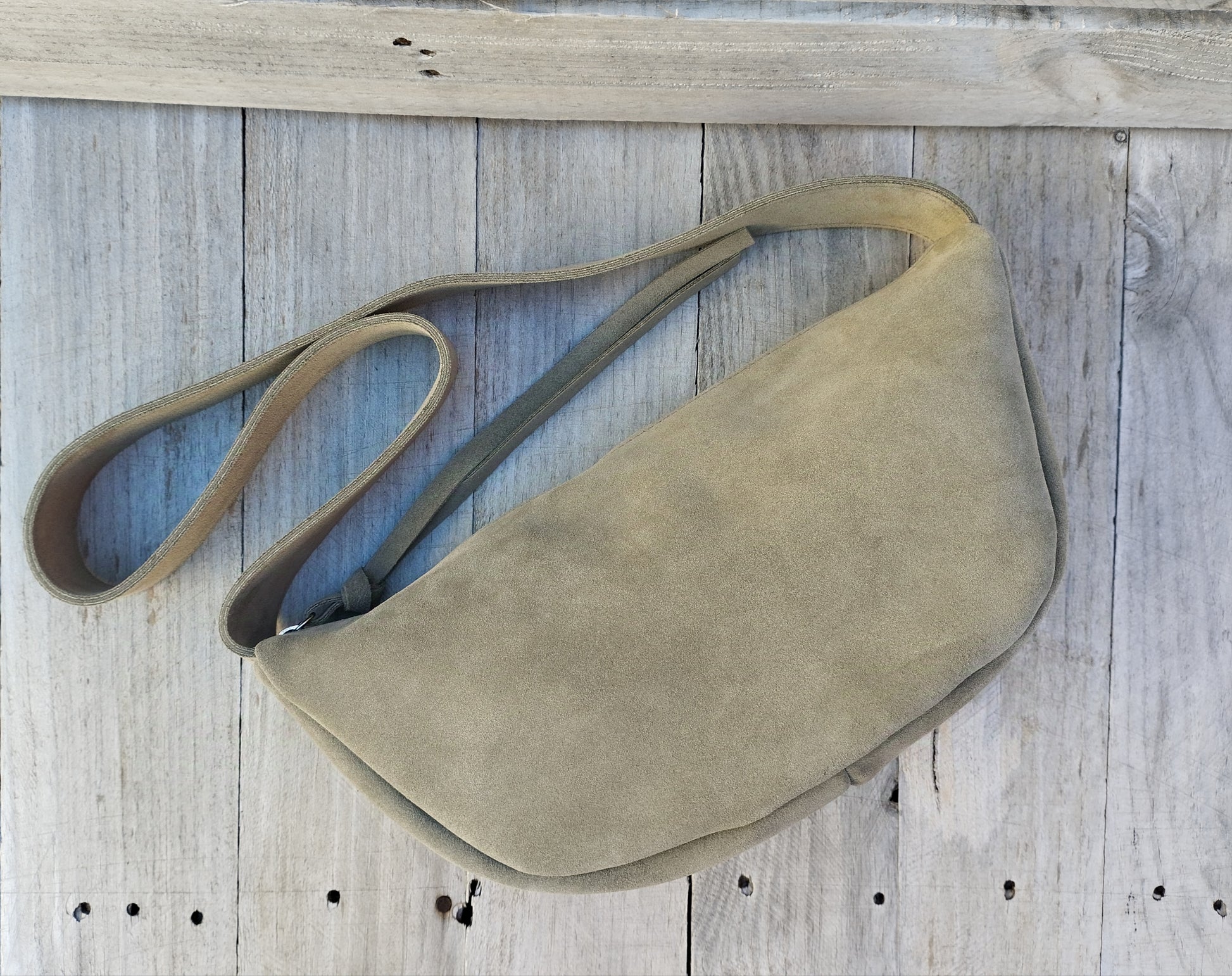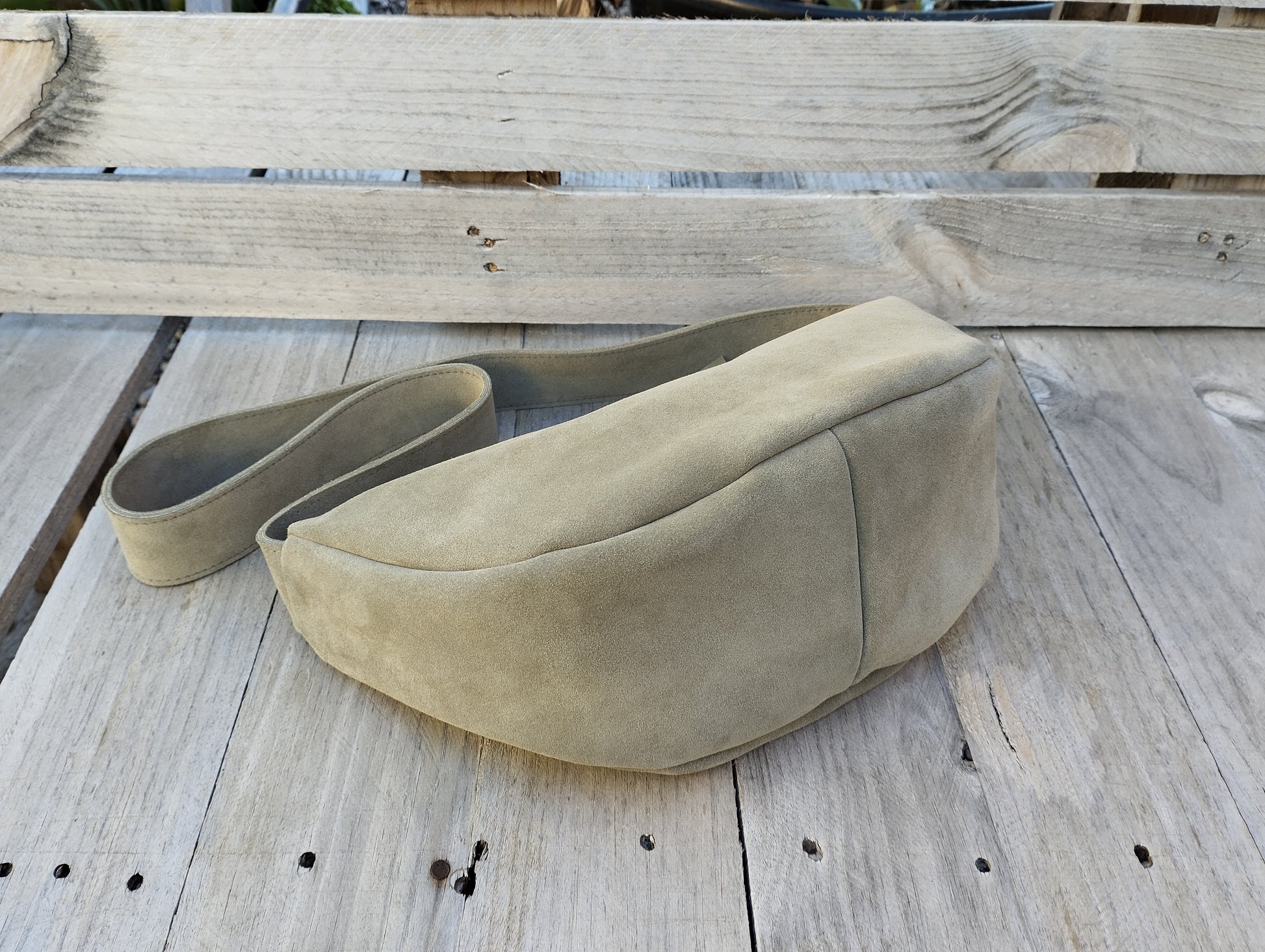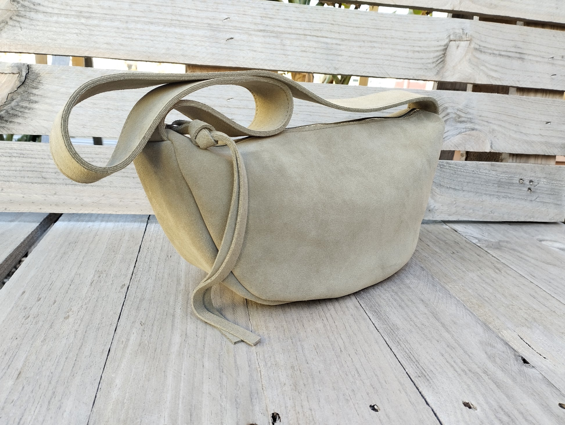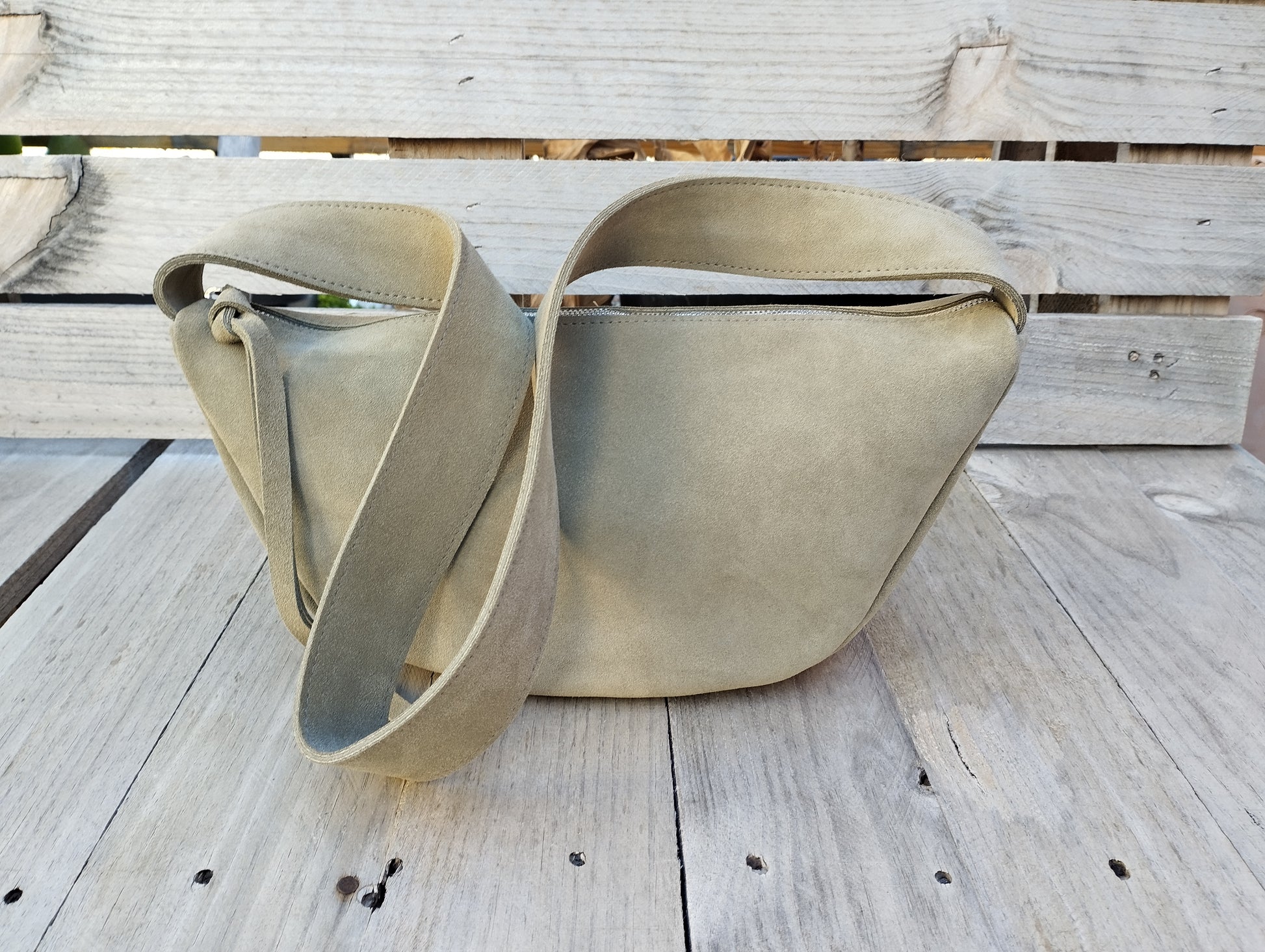 Belém es un bolso versátil, de media luna y con una bandolera que se puede llevar al hombro o cruzado.
