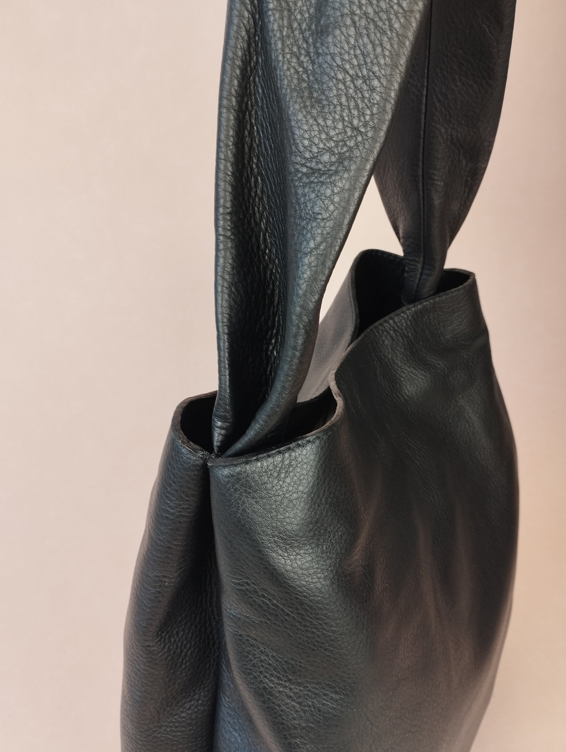 100% verdadera piel de vacuno con textura lisa y suave de color negro.
