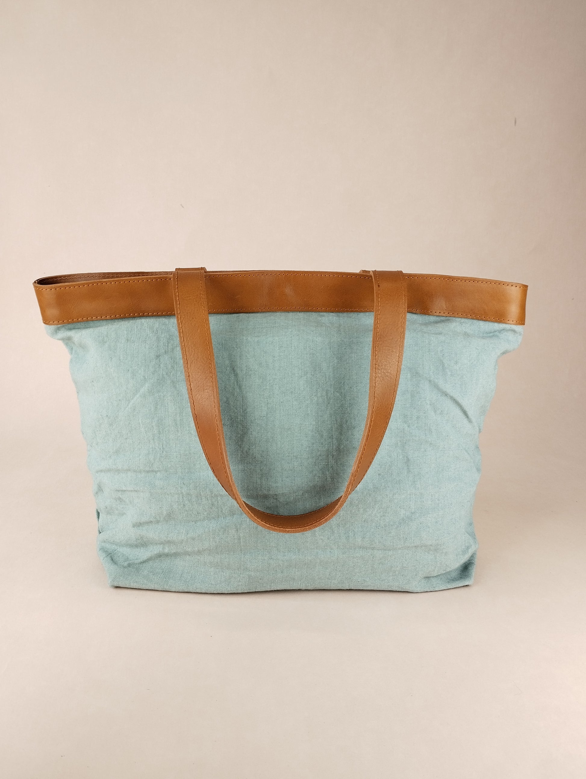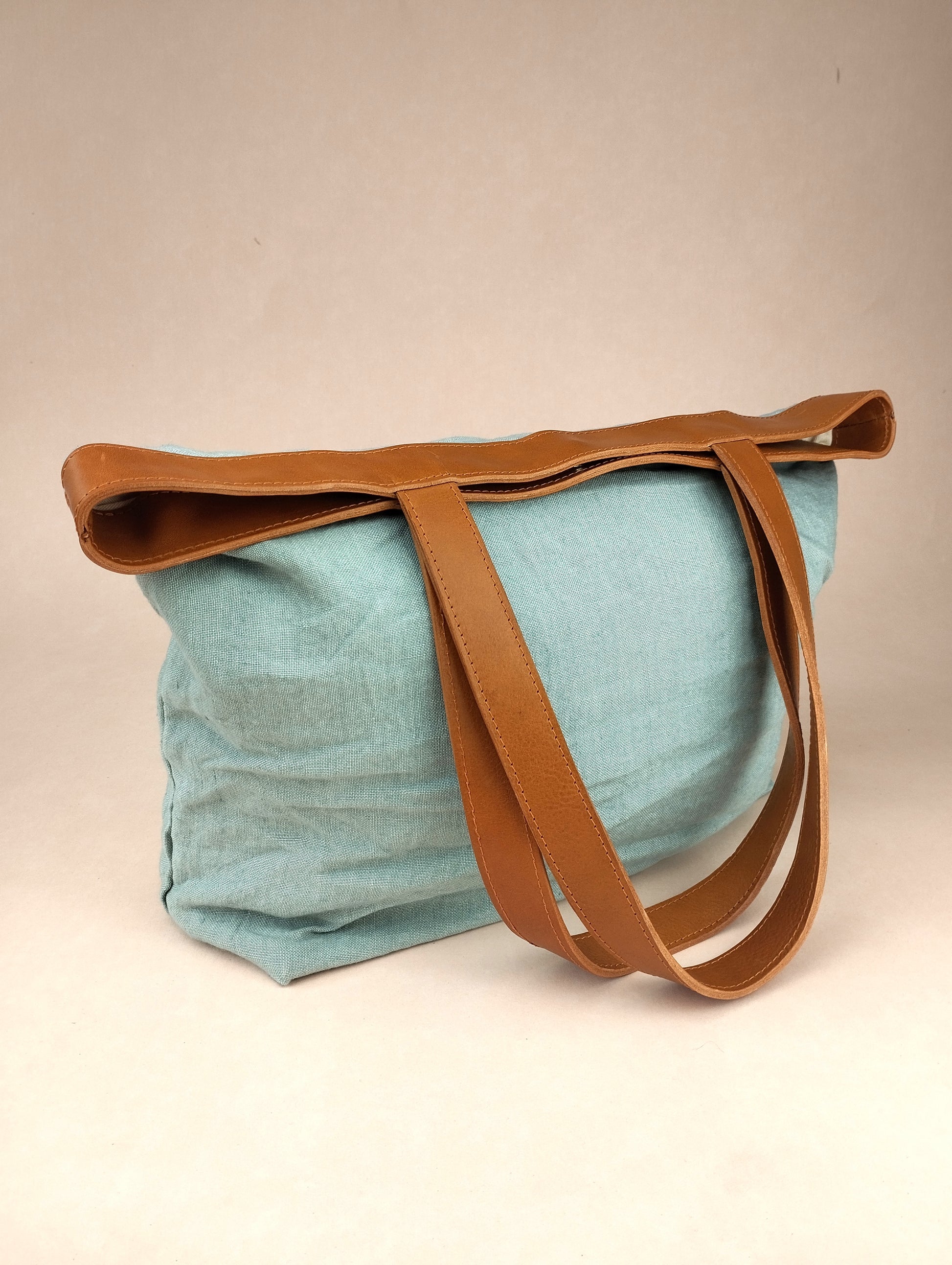 Bolso con asa de verdadera piel color camel, curtida y elaborada en Toscana.