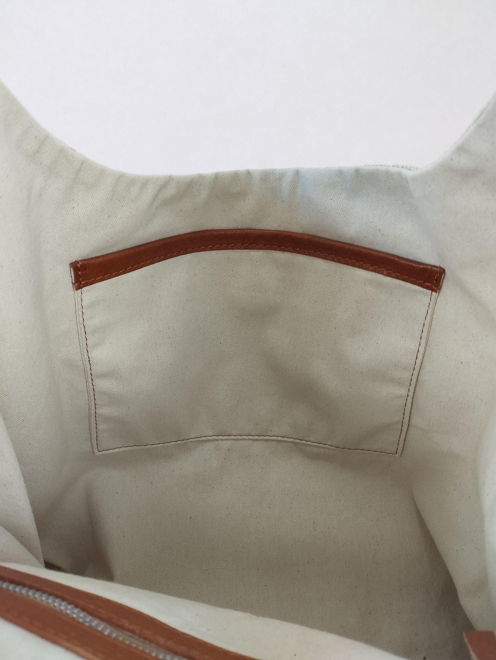 Interior del bolso de algodón 100%, un algodón grueso y resistente para que el cuerpo del bolso quede fuerte y firme.