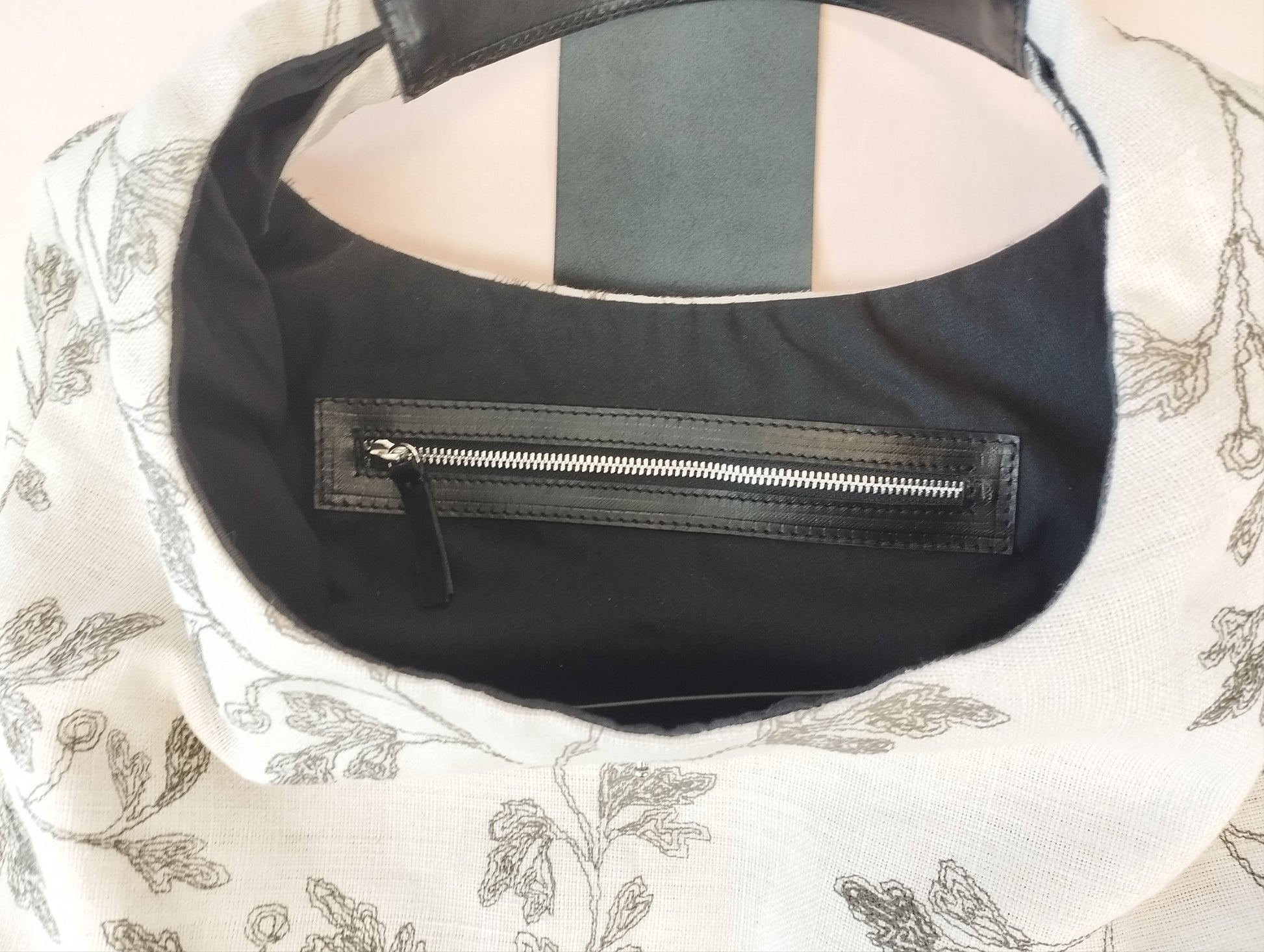 Cuerpo exterior en 100% lino color crudo o natural con bordado motivo floral de color negro.