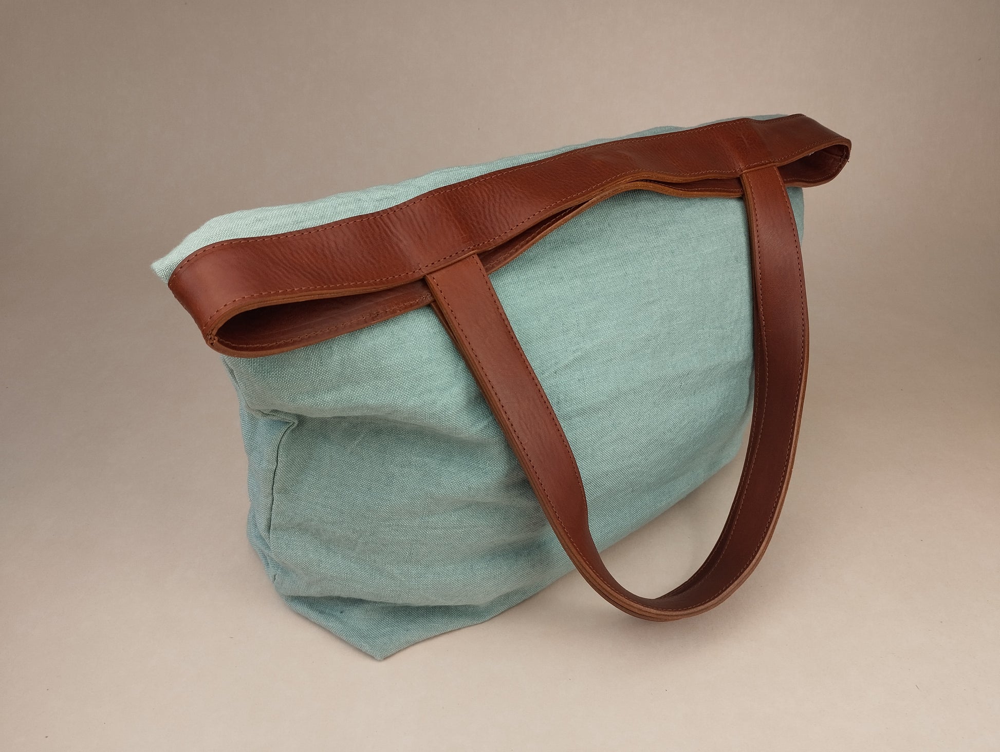 Bolso con asa de verdadera piel color hierro, curtida y elaborada en Toscana.